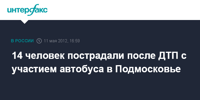 Москва. 11 мая. INTERFAX.RU - На Рязанском шоссе Подмосковья столкнулись автобус и легковой автомобиль, ранены 14 человек, сообщил "Интерфаксу" источник в правоохранительных органах. "В результате ДТП пострадали 14 человек, среди них есть пострадавшие в тяжелом состоянии, пятеро госпитализированы", - сказал источник.