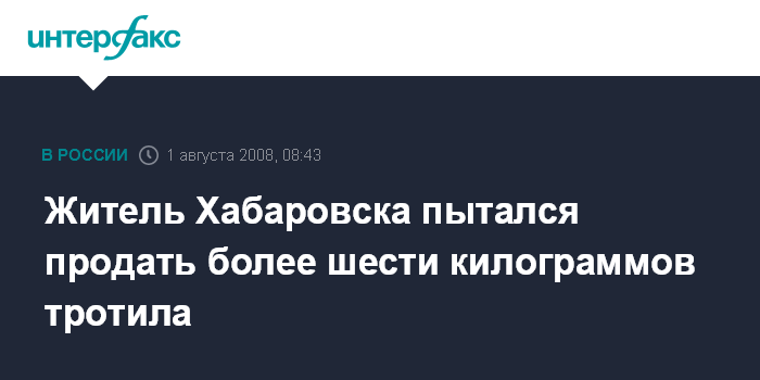 Москва. 1 августа. INTERFAX.RU - Сотрудники УВД по Хабаровскому краю совместно с коллегами из краевого УФСБ задержали в Хабаровске 28-летнего мужчину при попытке сбыть партию тротила.