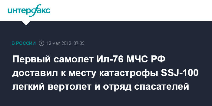 Первый самолет Ил-76 МЧС РФ доставил к месту катастрофы SSJ-100 легкий вертолет и отряд спасателей