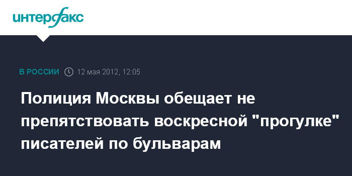 Полиция Москвы обещает не препятствовать воскресной "прогулке" писателей по бульварам
