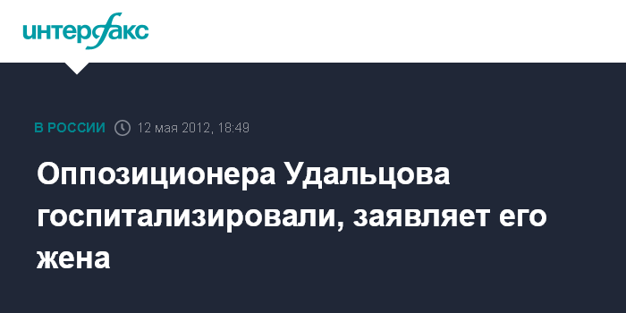 Москва. 12 мая. INTERFAX.RU- Координатора движения "Левый фронт" Сергея Удальцова, арестованного на 15 суток, увезли из спецприемника в больницу, сообщила жена оппозиционера Анастасия Удальцова.