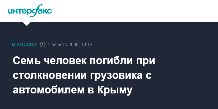 Москва. 1 августа. INTERFAX.RU - Семь человек, в том числе три ребенка погибли в дорожно-транспортном происшествии возле села Новоандреевка Симферопольского района Крыма.