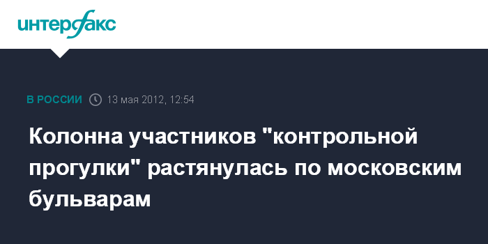 Москва. 13 мая. INTERFAX.RU - Участники флешмоба под названием "контрольная прогулка", в рамках которой известные российские литераторы собирались пройтись по Бульварному кольцу, вышли на проезжую часть и тем самым ограничили движение по некоторым центральным улицам.