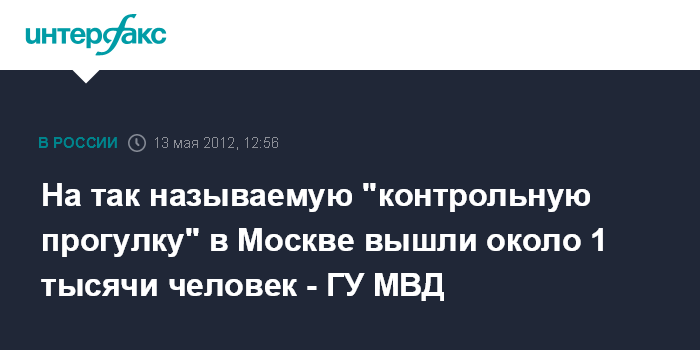 Москва. 13 мая. INTERFAX.RU - Так называемая "контрольная прогулка" создала проблемы в движении в центре Москвы, инспекторы ГИБДД вынуждены ограничить движение в месте проведения акции, сообщили журналистам в пресс-службе ГУ МВД России по Москве. "На так называемую "контрольную прогулку" на Пушкинской площади собралось около 1 тысячи человек, в настоящее время они начали движение в сторону Чистопрудного бульвара", - сказал представитель пресс-службы.