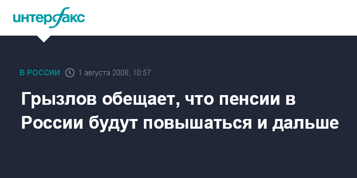 "Индексация с 1 августа - это уже третье повышение в течение года. Как мы и обещали, пенсии увеличиваются и будут увеличиваться дальше при первой же возможности", - сказал Грызлов журналистам.