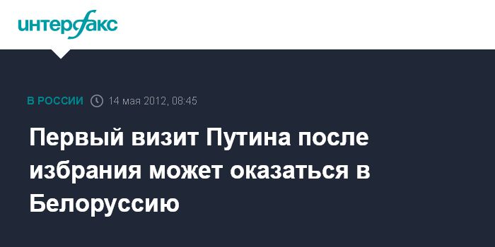 Москва. 14 мая. INTERFAX.RU - Президент России Владимир Путин в свой первый зарубежный визит отправится в одну из стран-партнеров по СНГ; по данным "Известий", глава государства выбирает между Казахстаном и Белоруссией, однако "Коммерсант" заверяет, что это наверняка будет Белоруссия.
