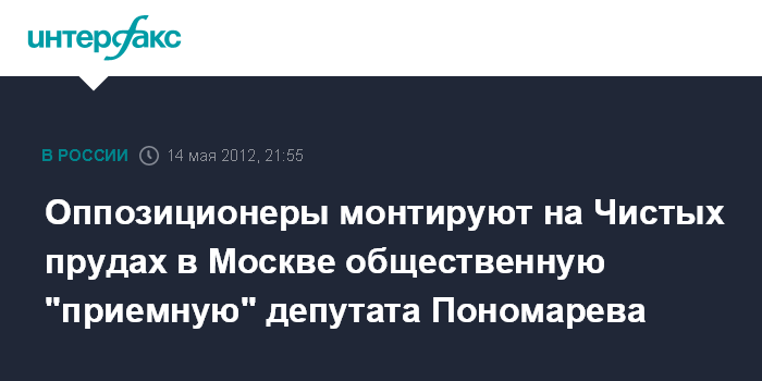 Москва. 14 мая. INTERFAX.RU - На Чистых прудах в лагере оппозиционеров откроется общественная приемная депутата Госдумы от "Справедливой России" Ильи Пономарева.
