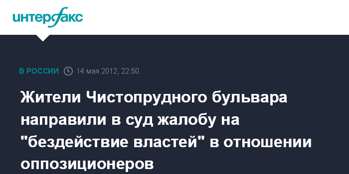 Москва. 14 мая. INTERFAX.RU - Жители Чистопрудного бульвара обратились в суд по поводу "бездействия властей" в отношении нарушителей порядка протестной акции.