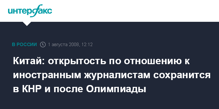 Китай: открытость по отношению к иностранным журналистам сохранится в КНР и после Олимпиады