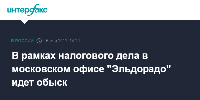 Москва.15 мая. INTERFAX.RU - Следователи СК РФ проводят обыск в офисе ООО "Эльдорадо", расположенном в Москве, в рамках уголовного дела об уклонении от уплаты налогов в особо крупном размере, сообщил "Интерфаксу" официальный представитель СК РФ Владимир Маркин.