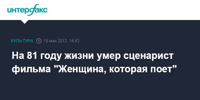 На 81 году жизни умер сценарист фильма "Женщина, которая поет"