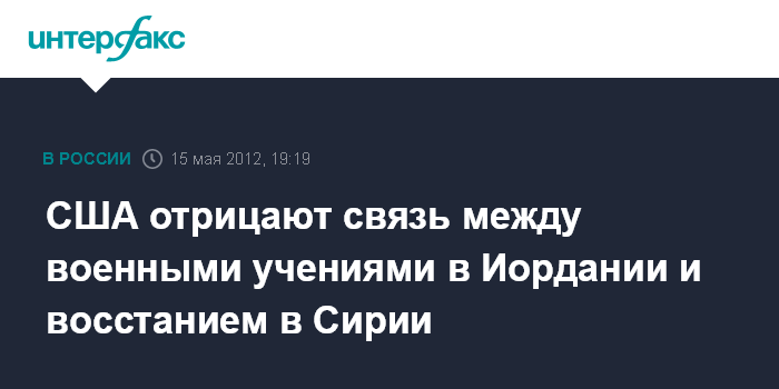 Вашингтон. 15 мая. INTERFAX.RU - В армии США отрицают связь между беспорядками в Сирии и секретными военными учениями в Иордании, о проведении которых стало известно СМИ, сообщает во вторник американский телеканал Fox News.