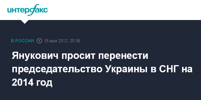 Москва. 15 мая. INTERFAX.RU - Украина просит перенести свое председательство в СНГ с 2013 на 2014 год, заявляет президент Украины Виктор Янукович.