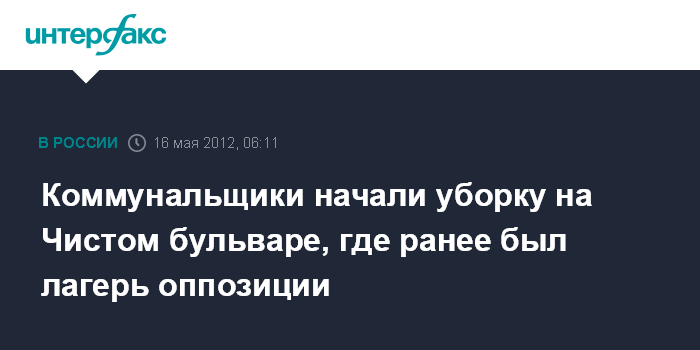 Москва. 16 мая. ИНТЕРФАКС - Лагерь оппозиции на Чистопрудном бульваре прекратил свое существование, на его месте находятся несколько десятков сотрудников коммунальных служб столицы, передает корреспондент "Интерфакса".