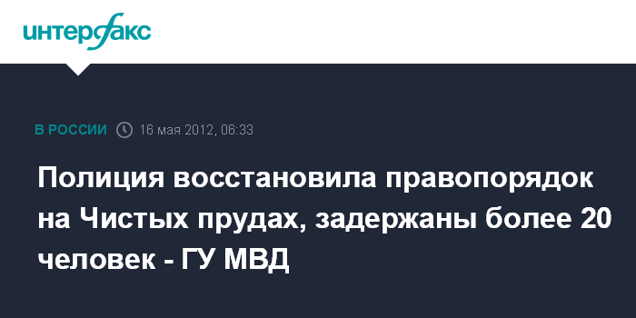 "В настоящее время правопорядок на Чистых прудах восстановлен, городские службы приступили к исполнению решения Басманного суда столицы", - подчеркнули в столичном главке МВД.