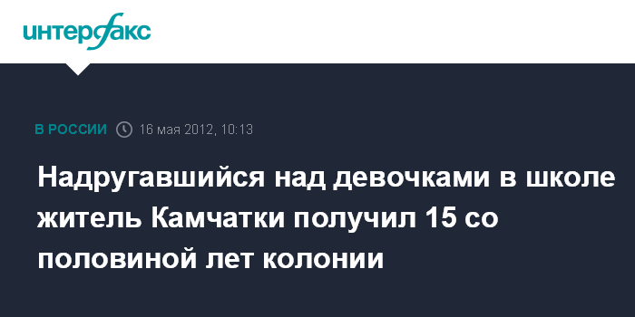 Петропавловск-Камчатский. 16 мая. INTERFAX.RU - Камчатский краевой суд вынес обвинительный приговор 36-летнему жителю Вилючинска, надругавшемуся над двумя девятилетними девочками в здании школы краевого центра осенью прошлого года.