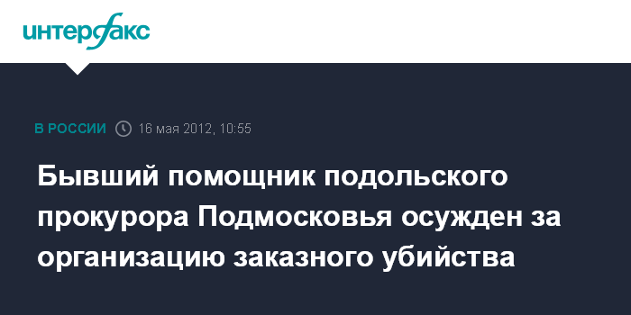 Бывший помощник подольского прокурора Подмосковья осужден за организацию заказного убийства