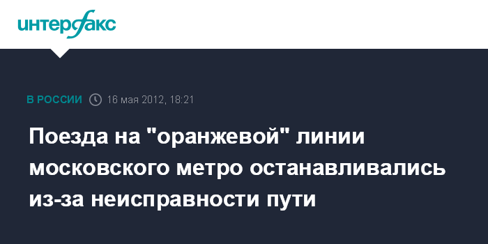 Поезда на "оранжевой" линии московского метро останавливались из-за неисправности пути