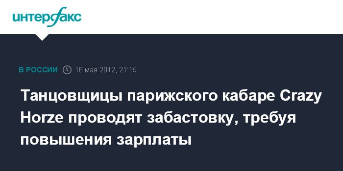 Париж. 16 мая. ИНТЕРФАКС - Знаменитое парижское кабаре Crazy Horze впервые в своей истории столкнулось с забастовкой танцовщиц, передает в среду радиостанция "Франс энфо".