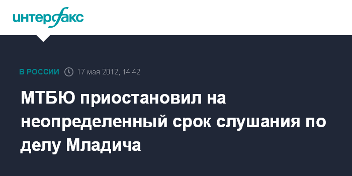 Лондон. 17 мая. INTERFAX.RU - Судебный процесс над бывшим командующим армией боснийских сербов Ратко Младичем приостановлен на неопределенный срок, сообщила BBC в четверг.