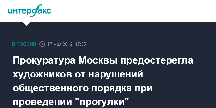 Прокуратура Москвы предостерегла художников от нарушений общественного порядка при проведении "прогулки"