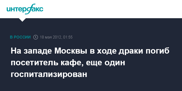 Москва. 18 мая. ИНТЕРФАКС – На западе Москвы в помещении кафе, расположенного в доме N 15 по улице Неверовского совершено убийство.
