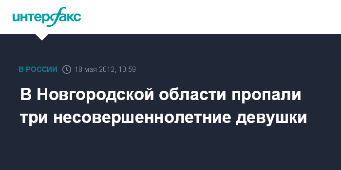 По словам источника, отдел уголовного розыска новгородской полиции объявил пропавшими без вести трех девушек 14, 16 и 17 лет. По предварительным данным три подруги пропали 13 мая, после посещения музея в Юрьево под Великим Новгородом. На телефонную связь с родителями девушки не выходят.