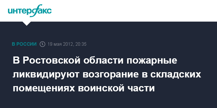 Ростов-на-Дону. 19 мая. INTERFAX.RU - Пожарные расчеты ведут борьбу с огнем на складе воинской части в городе Каменск-Шахтинский (Ростовская область), сообщили агентству "Интерфакс-Юг" в правоохранительных органах города Каменск-Шахтинский.