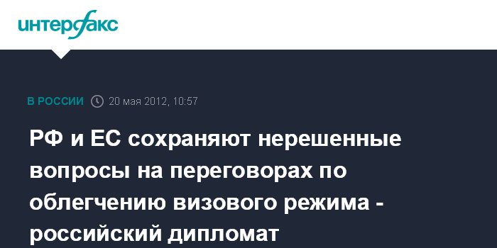 РФ и ЕС сохраняют нерешенные вопросы на переговорах по облегчению визового режима - российский дипломат