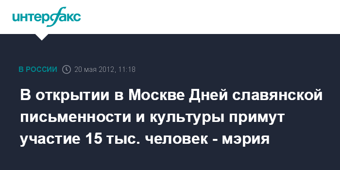 В открытии в Москве Дней славянской письменности и культуры примут участие 15 тыс. человек - мэрия