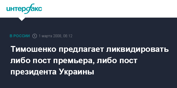 Тимошенко предлагает ликвидировать либо пост премьера, либо пост президента Украины