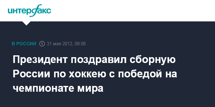 Москва. 21 мая. INTERFAX.RU - Президент РФ Владимир Путин поздравил по телефону российскую сборную, завоевавшую золотые медали на чемпионате мира по хоккею.