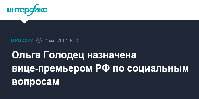 Ольга Голодец назначена вице-премьером РФ по социальным вопросам