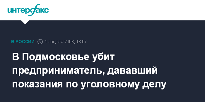 В Подмосковье убит предприниматель, дававший показания по уголовному делу