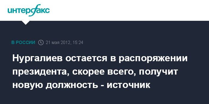 Москва. 21 мая. INTERFAX.RU - Бывший министр внутренних дел Рашид Нургалиев остается в распоряжении президента РФ и, возможно, получит новое назначение, сообщили "Интерфаксу" в его окружении в понедельник.