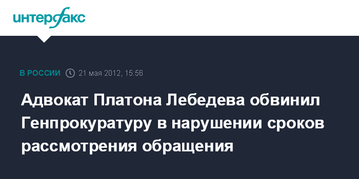 Адвокат Платона Лебедева обвинил Генпрокуратуру в нарушении сроков рассмотрения обращения