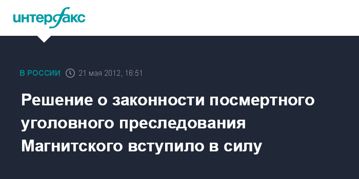 Решение о законности посмертного уголовного преследования Магнитского вступило в силу