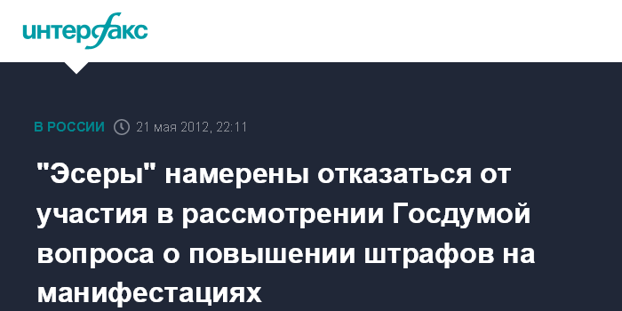 "Эсеры" намерены отказаться от участия в рассмотрении Госдумой вопроса о повышении штрафов на манифестациях