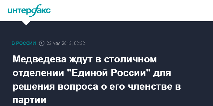 Медведева ждут в столичном отделении "Единой России" для решения вопроса о его членстве в партии