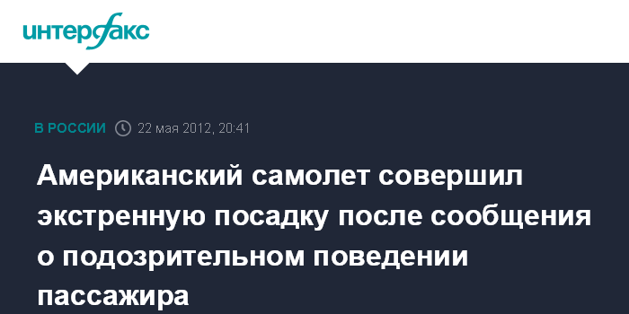 Американский самолет совершил экстренную посадку после сообщения о подозрительном поведении пассажира