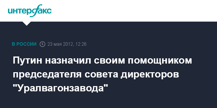 Путин назначил своим помощником председателя совета директоров "Уралвагонзавода"