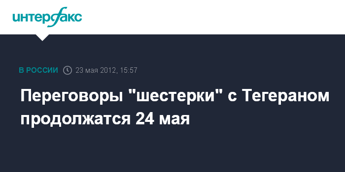 Тегеран. 23 мая. INTERFAX.RU - Переговоры "шестерки" международных посредников (пять постоянных членов СБ ООН и Германия) и Ирана в Багдаде продолжатся в четверг, 24 мая, сообщил в среду иранский телеканал "Пресс ТВ" со ссылкой на информированные источники.