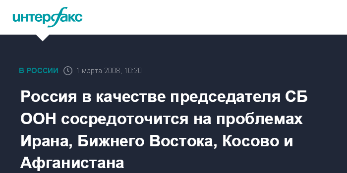 Россия в качестве председателя СБ ООН сосредоточится на проблемах Ирана, Бижнего Востока, Косово и Афганистана