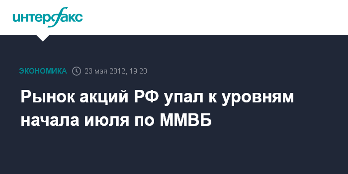 Москва. 23 мая. INTERFAX.RU - Российский рынок акций в среду упал вслед за мировыми площадками на ожиданиях выхода Греции из еврозоны, индекс ММВБ на закрытие торгов упал в район 1255 пунктов, что является минимумом с 1 июля 2010 года (1254,65 пункта).