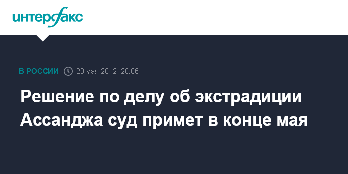 Лондон. 23 мая. INTERFAX.RU - Верховный суд Великобритании огласит 30 мая 2012 года решение по апелляции основателя сайта WikiLeaks Джулиана Ассанджа против его экстрадиции в Швецию, сообщается в среду в коммюнике суда.