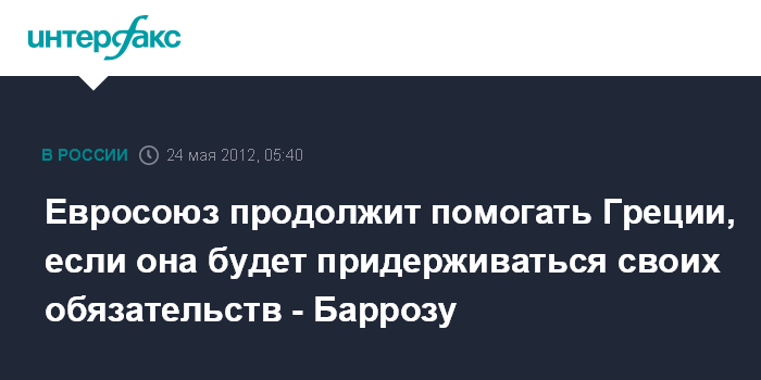 "Наш сигнал ясен: мы будем помогать Греции, если она будет выполнять свои обязательства", - сказал Ж.М.Баррозу на пресс-конференции в Брюсселе в ночь на четверг после завершения неформального саммита ЕС.
