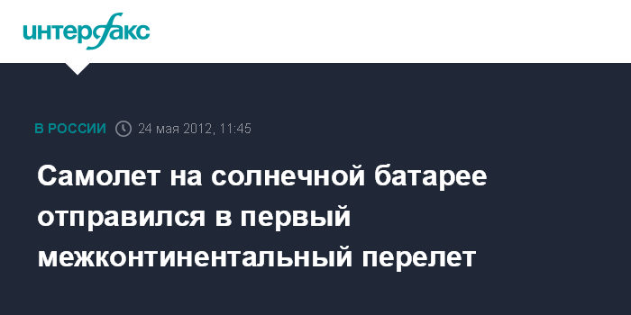 Самолет на солнечной батарее отправился в первый межконтинентальный перелет
