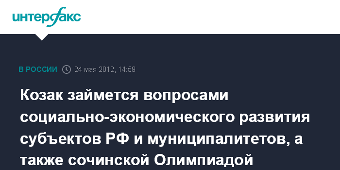 Козак займется вопросами социально-экономического развития субъектов РФ и муниципалитетов, а также сочинской Олимпиадой