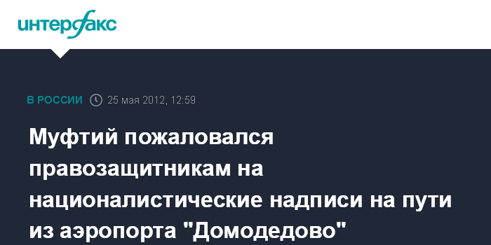 Муфтий пожаловался правозащитникам на националистические надписи на пути из аэропорта "Домодедово"