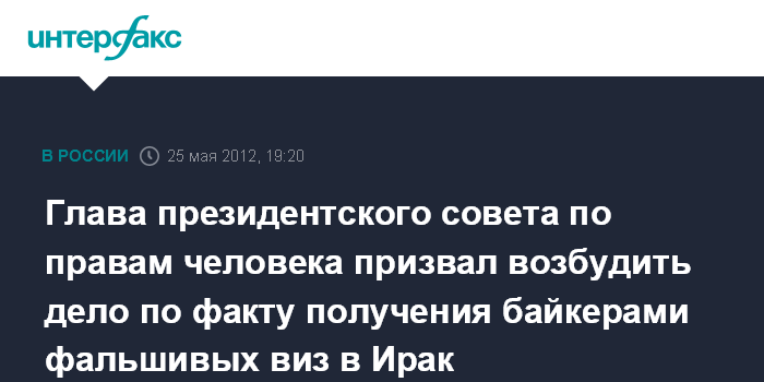 Глава президентского совета по правам человека призвал возбудить дело по факту получения байкерами фальшивых виз в Ирак